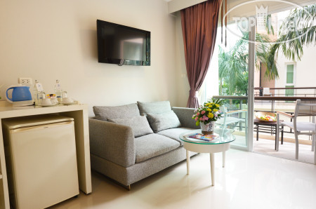 Номер дали на двоих Standard. Балкон практически отсутствует. Для сушки белья уменьшая сушилка шириной 20см, которая помещается едва едва на этом "балкончике". На просьбу выдать ещё одну, ответили отказом, указав на ближайшую платную прачечную, а которой сушильные машины заняты всегда. Стирали кстати там же, 30 бат стоит, порошок купили в севенилевен.